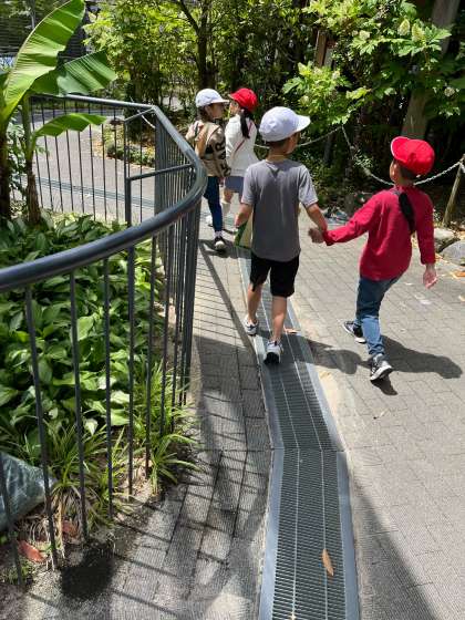 1年生がはぐれないように優しく声をかけながら、グループで楽しくクイズラリーに取り組みました。