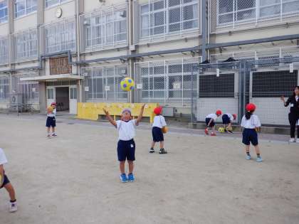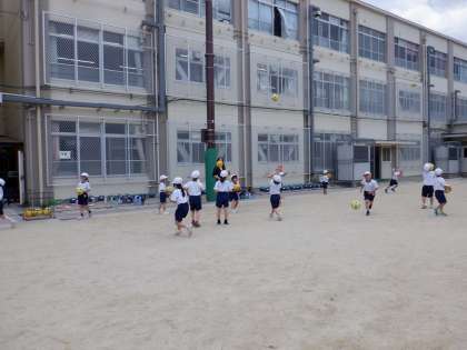 体育で、「ゆうぐあそび」だけでなく、「ボールあそび」もしました。安全にボールを使えるように学習し、休み時間にも学級のボールを使えるようにしました。自分で投げたり受けたりし、楽しそうでした。