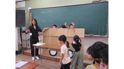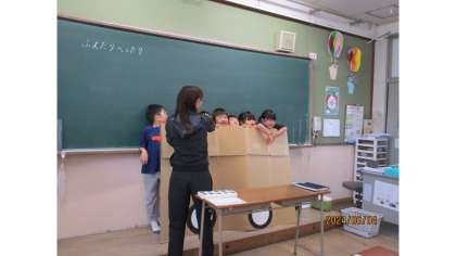 今日の算数科の学習では、数が増えたり減ったりする場面を実際に子ども達が、バスに乗ったりバスから降りたりする場面を設定して考えました。場面設定をすることで、イメージが持ちやすかったのか、楽しく学習に取り組んでいました。