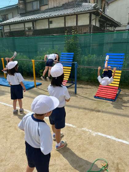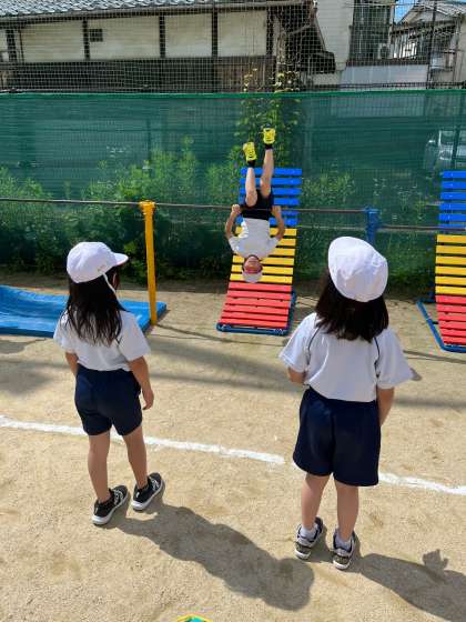 友だちとアドバイスをし合いながら、できる技を増やしていっています。失敗してもあきらめずに挑戦する姿がたくさん見られました。