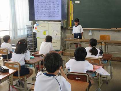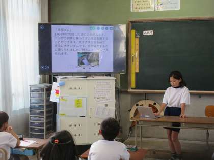 社会科で都道府県を学習し、国語科で都道府県名を漢字で書く学習をしています。今回は、日本列島を半分にした時に東側になる都道府県の中で、自分が紹介した県の特産物や観光スポットをロイロノートにまとめて紹介してくれています。