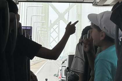 明石海峡大橋が見えました!!バスの中は歓声で溢れました!