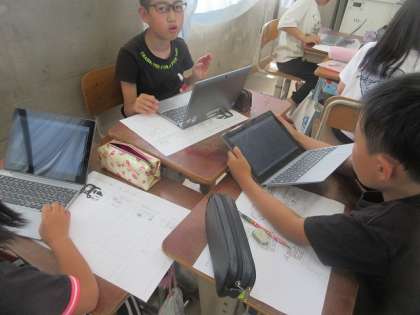 社会科の「くらしとごみ」では、パッカー車に集められたあと、ごみがどのように処理されているのかを班のグループで交流しました。ごみを分別したり、燃やしたりなど、さまざまな意見を交流することができました。