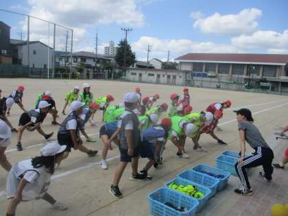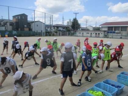 今日は2試合!子どもたちは準備からとてもテンポよくチームで進めていました!素早く準備を済ませ、準備体操をし終わったところからチームの時間に入ります。パスを回したり、ゲームの練習をしたりなど・・・チームの時間に工夫が見られるようになってきましたね。