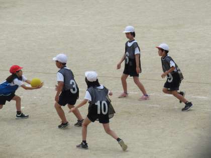 3年生のエンドボールは、昨日から学習がスタートし、今日が2時間目でした。少しずつエンドボールのルールが分かってきたようです。