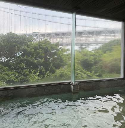 お風呂からの眺めも最高です。みんなゆったりと時間を過ごしています。