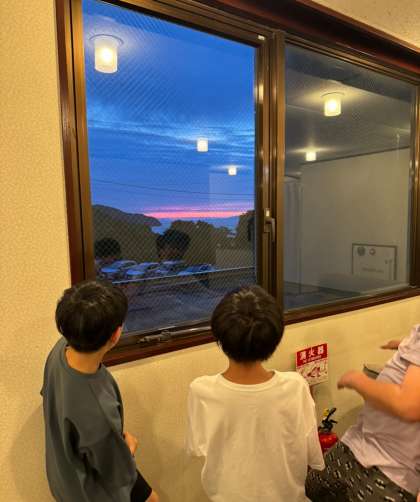 もう夕暮れです。赤く染まる空と大鳴門橋に感激していました。