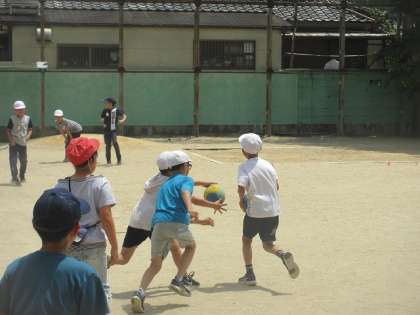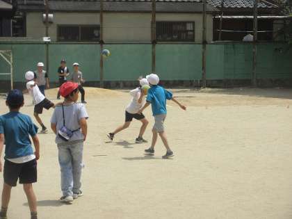 暑い中でも、運動場でドッジボールをして遊ぶ子どもたちがたくさんいました。これからもたくさん遊んで、更に暑くなる夏に向けて体力づくりができればと思います。