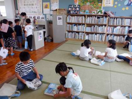 先週、読んだ本を読書ノートに記録することを教えてもらったので、本を借りることに意欲的になっています。読み聞かせをしてもらい、好きな本を借り、借りた本とは別の本もいろいろ読んでみて、「次はこれを借りよう。」「この本もおもしろい。」と、読書を楽しんでいました。