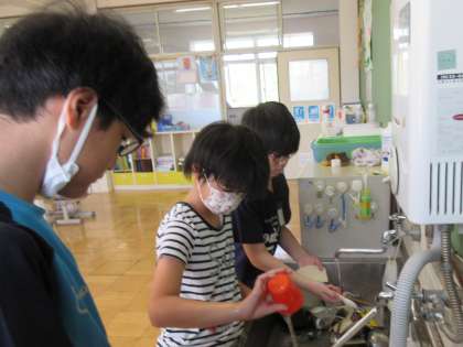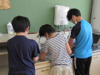 みんなで協力しながら、手際よく食器などを洗うことができました。