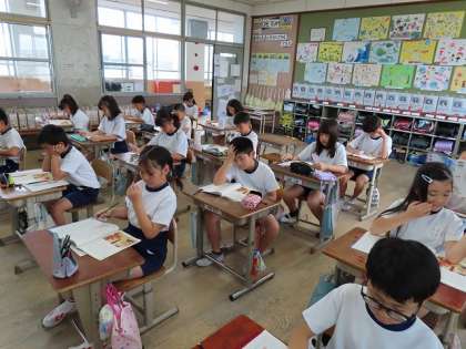 「一つの花」新しい単元の学習に入りました。題名にも入つている「一つ」という言葉がたくさん出てきます。今日は、「一つ」「一つだけ」という言葉から感じたことを初発の感想として書きました。