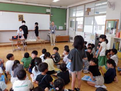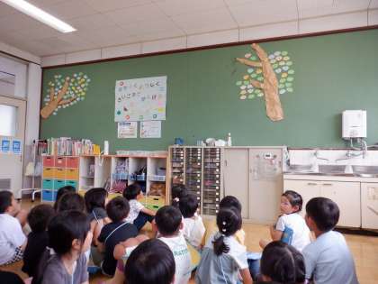 3組さんとの交流学習、「ひまわり学習」がありました。3組がどんな学級なのかを知り、自分たちも、好きな「なにか」を一人一つずつ聞いてもらいました。好きなものやことを書いたはっぱの紙が3組の教室に貼ってもらえるので、嬉しそうでした。また一緒に遊びたいですね!