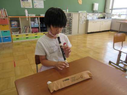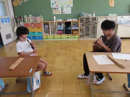 すると、5年生が、「僕は今、この曲をしているよ。」と、お互いリコーダーを演奏し始めました。