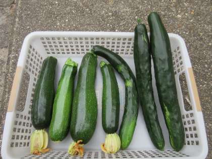 今日もズッキーニときゅうりがたくさん獲れましたよ。