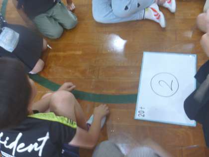 グループで答えを一つ決めて、ホワイトボードに書いて答えました。正解すると・・・グループに得点が入ります。