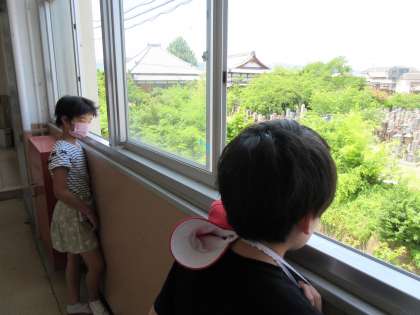 昨日、雨上がりに水路の水が増えていたことに気付いた3組の子どもたち。今日は朝から快晴で、昨日との違いを見比べていました。
