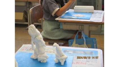 一緒にお散歩したいものや人を想像したり、お散歩に行きたい場所を想像したりしながら、粘土で工夫して表しました。明日もう一日取り組んで仕上げる予定をしています。どんな作品に仕上がるのか、今からとても楽しみです。