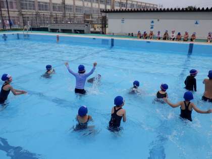 今週はプールの日がすべて晴れてくれました!水はまだ少し冷たいですが、元気に活動できました。低水位の水の中で走ったり、ジャンプしたりしたほか、浮かんでみたり、もぐってみたりしました。上手にできるお友達の様子を見て、「すごい!」「できそう!」「やってみる!」と頑張る姿も見られました。