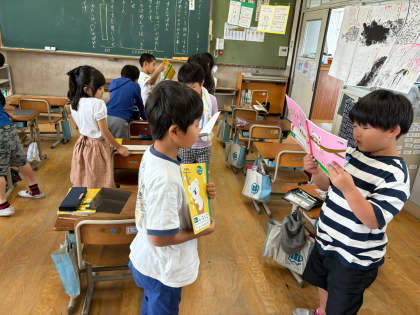 みんな大好きスイミーの物語。単元の終末では、自分の好きな場面とそのわけを交流します。きっちり文章を整えて伝え合う練習の中で、「同じ!」や「同じだけど、わけが違う!」と新しい発見をしている姿がたくさん見れました。