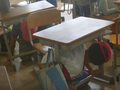 今日の放送が鳴ったとき、素早く机の中に入り、机の脚をしっかりとおさえていたことがとてもよかったです。