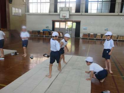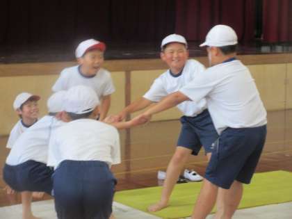 体育の学習では、「すもうあそび」をしました。力いっぱい押したり、姿勢を低くして踏ん張ったりしました。特に体のバランスを意識してすもうあそびをしました。みんなの楽しんでいる姿がよかったです。