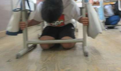 今日は、土曜参観でした。4時間目には、地震を想定した引き渡し訓練がありました。地震の放送が流れると、素早く机の下に隠れることができました。真剣に取り組むことができたことがよかったです。