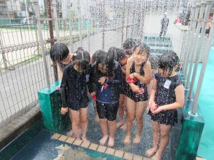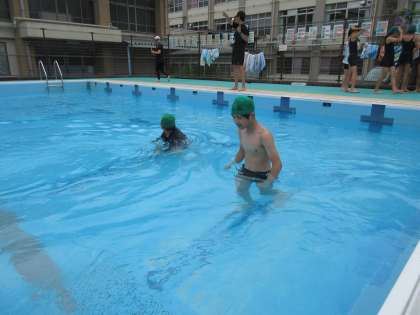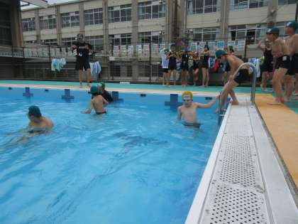 今年度3組の水泳は、各学年の友達と一緒に学習します。