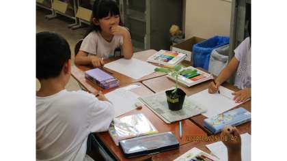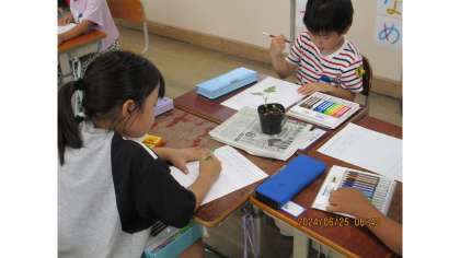 今日は、グループで育てている花の種の観察をしました。種の種類によって、葉っぱの形が随分違うことに気づいたり、朝顔の葉っぱとの違いに気づいたりと、観察しながら友達と色々な発見をしていました。
