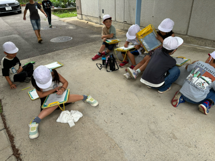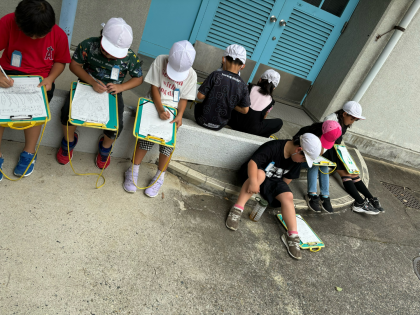 「ナスの葉っぱは、、、」「キュウリの実は...」「葉っぱの色は、、、」「茎は、、、」と、国語科「かんさつ名人になろう」の単元で身につけた力を使い、観察して発見したことを上手にまとめていました。