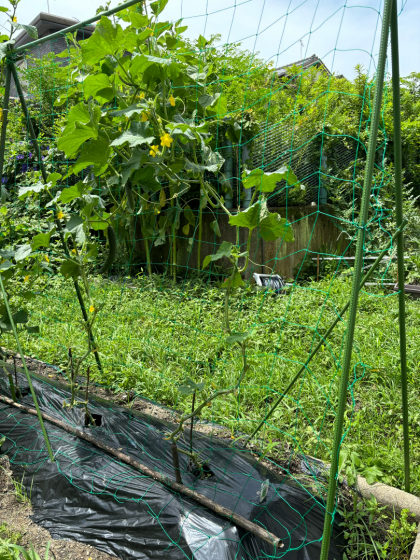 畑で育てている夏野菜が見事に生っています!キュウリは、病気になってしまい、その部分を伐採したので物さみしくなりましたが、ナスは元気いっぱいです。子どもたちは、その数や大きさに驚いていました。畑ではミニトマトも育てており、自分のミニトマトと全く違う大きさに圧倒されながらも、「どうすればこんなに大きく育てることができるのだろうか」と新しい疑問に出会っている子もいました。