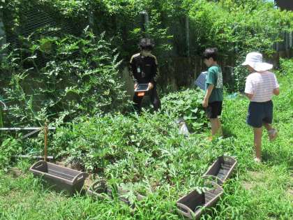 ここ数日は暑過ぎてか、野菜の収穫量がグンと減っている3組の畑ですが、スイカだけは着々と大きくなり、収穫まであと10日ほどの予定です。