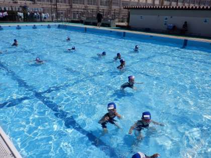 一度、雨でプールに入れない日があり、久しぶりのプールでした。腰より上まで水があり、「かけっこ」や「カニ歩き」が進みにくくなって、盛り上がりました。もぐったり、浮いたりする活動もたくさんしました。今日初めて顔をつけられるようになったお友達がたくさんいました!