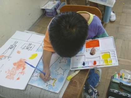 色付けをしています。自分の伝えたいことが伝わるように、色を考えながら塗っています!