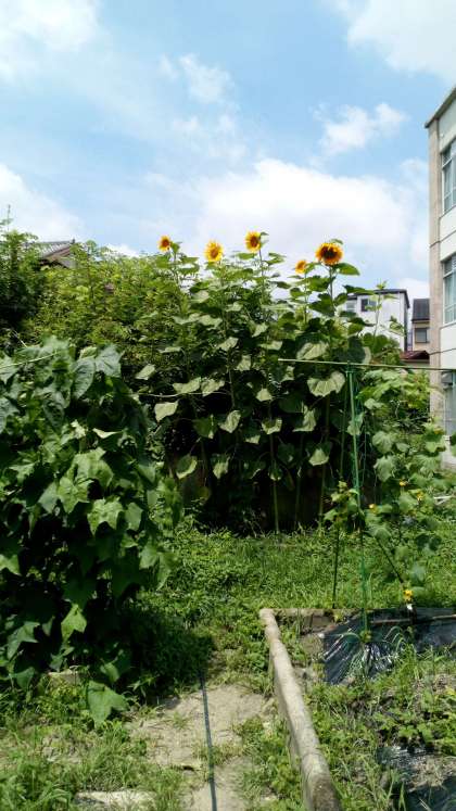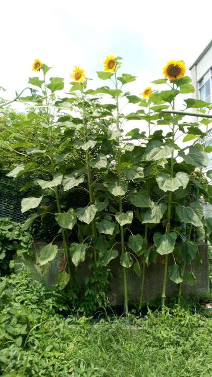 畑に今年も大きなヒマワリが咲きました!高さは推定2.8m!