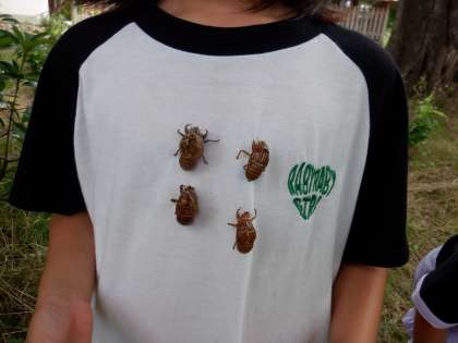 生活科「なつとともだち」の学習で淀城跡公園へ行きました。夏の生き物や草花を探しました。セミの抜け殻をブローチにしたり、虫を探したりしました。シジミチョウやモンシロチョウがいました。