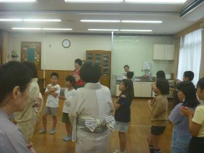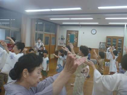 見よう見まねで頑張って踊りました。さすが子どもたちです!どんどん踊りのフリを覚えていました。