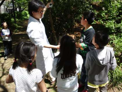 次に、『樹木たんけん隊』となり、日本の木々100種類集まった庭に出て