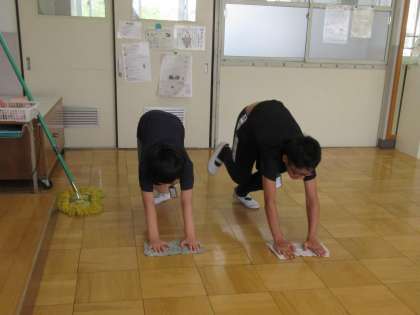 大そうじなので、教室の床を濡れぞうきんで拭きました。