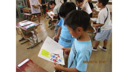 「おむすびころりん」の学習では、自分の好きな場面を友達に紹介しました。友達に紹介するときには、どうしてその場面が好きなのかを理由を伝えながら、リズムにのって音読をして、紹介しました。