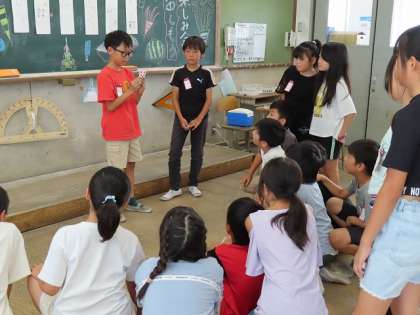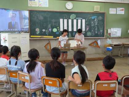 「1学期お楽しみ会」4年生になって初めてのお楽しみ会を行いました。子どもたちは、各係りの友達と協力して準備をしてきました。図書係は、「のみのピコ」の読聞かせ、マジック係は2人でする出し物、各自がする出し物(輪ゴム・トランプ)、クイズ係は、都道府県クイズやなぞなぞ、スリーヒントクイズなどをしてくれました。