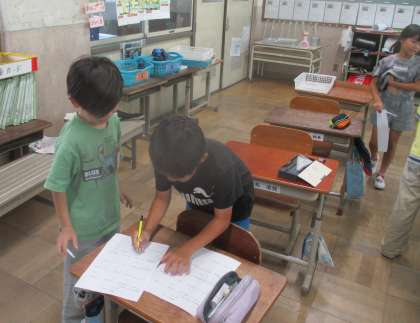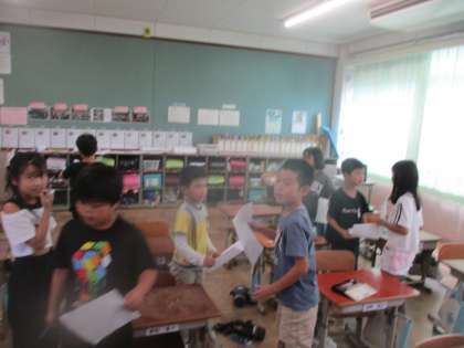 その後・・・各教室に戻って、1学期に引き続きビンゴゲームパート2をしました。たくさんの友達と夏休みの思い出を語り合っていました。どんどん進んで友達と話す姿がよかったです。