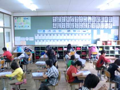 左は子どもたちのテストの様子です。みんな真剣にがんばりました。