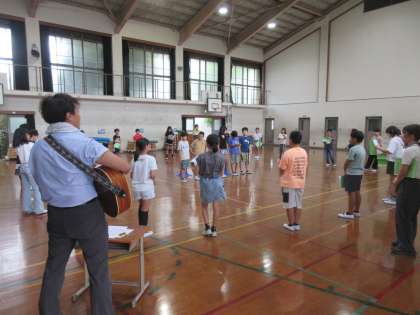 キャンプファイヤーで歌う歌を練習をしました。教室では毎日練習をしています。どんどん上手になっています。