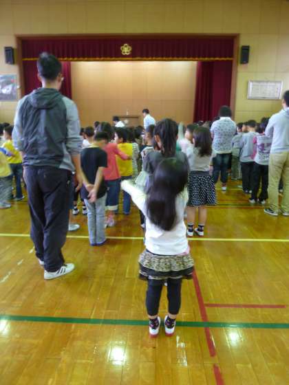 2年生になって並ぶ場所も変わり,いい姿勢でお話を聞こうと頑張っています。