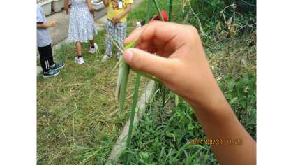 今日は、学校の畑に行って生き物を探しに行きました。ちょうちょ・とんぼ・はち・ダンゴ虫・ショウリョウバッタを見つけることができました。とても大きいショウリョウバッタを見つけて、子どもたちは大興奮でした。