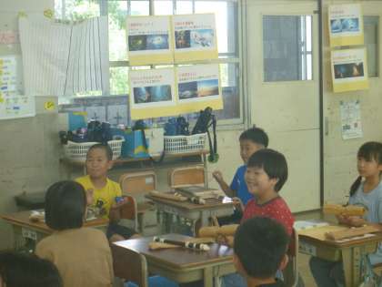 たくさんの楽器にも触れました。ウッドブロックやすず、木琴など・・・グループで上手に分担していました。