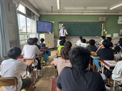 新しいALTのマックス先生との出会いの1時間でした。クイズを通して、自己紹介をしていただきました。