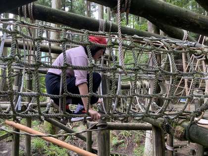 「冒険の森」で最後まで人気だったのはターザンロープ。楽しそうな声が森に大きく響いていました。