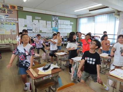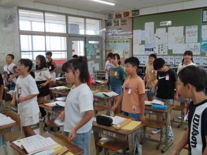 今日は、夏休み中に練習してきた「陽気な船長」のリコーダーを自信をもって吹いている姿が見られました。また、新しい曲「ゆかいに歩けば」に合わせて体を使って旋律の特徴を楽しく表現していました。強弱やスタッカートなど気が付いたことも発表していました。