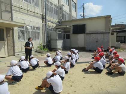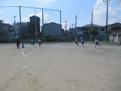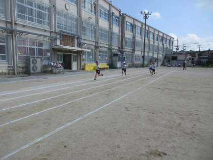 運動会に向けて80m走をやりました。暑い中、自分の力を出し切りました。ゴールの最後まで走りきることができました。